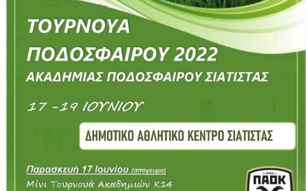 Τουρνουά ποδοσφαίρου Ακαδημιών με τη συμμετοχή του ΠΑΟΚ, θα πραγματοποιηθεί στη Σιάτιστα το τριήμερο 17 με 19 Ιουνίου