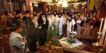 Στη συνέχεια πραγματοποιήθηκε Μέγας Πανηγυρικός εσπερινός και η περιφορά της εικόνας του Αγίου.