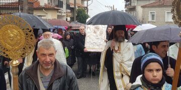Η υποδοχή της εικόνας έγινε στην είσοδο της πόλης, στον Άγιο Νικάνορα, στις 5:00 το απόγευμα και παρά το χιονόνερο που έπεφτε από νωρίς αρκετοί ήταν οι πιστοί που ακολούθησαν.