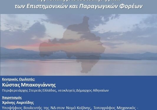 Στην Κοζάνη ο Κώστας Μπακογιάννης σε εκδήλωση για την Ανάπτυξη και την Επιχειρηματικότητα σήμερα στις 8μμ στην Εύξεινο Λέσχη – Στέγη Ποντιακού Πολιτισμού