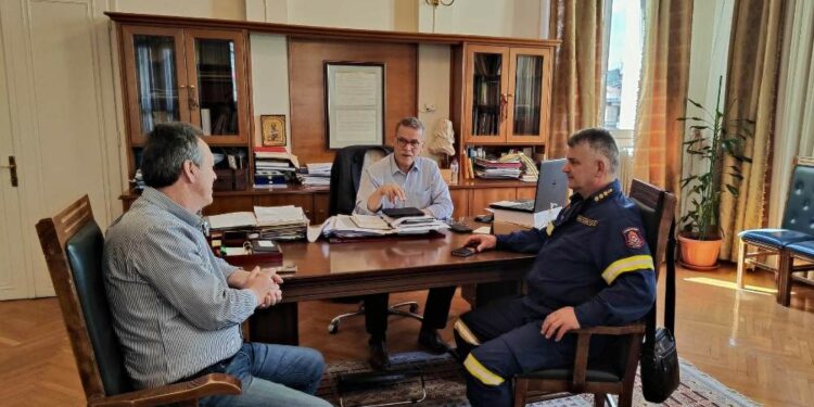 Θέματα που άπτονται της Πολιτικής Προστασίας και της βέλτιστης συνεργασίας μεταξύ του Δήμου Κοζάνης και της Πυροσβεστικής, συζήτησαν ο δήμαρχος Κοζάνης, Λάζαρος Μαλούτας και ο διοικητής Πυροσβεστικών Υπηρεσιών Π.Ε. Κοζάνης, Κωνσταντίνος Μαυροματίδης, την Πέμπτη 23 Μαρτίου 2023, στο Δημαρχείο.