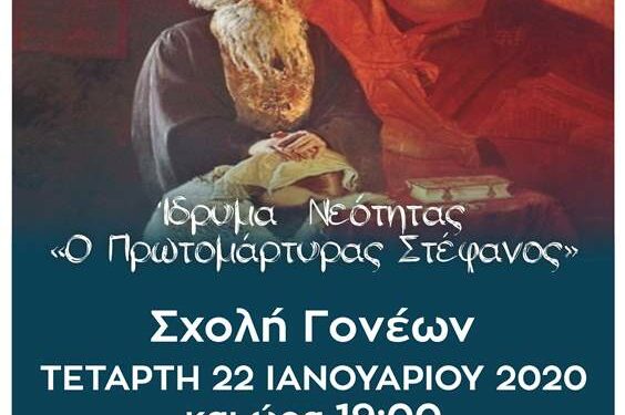 Την Τετάρτη 22 Ιανουαρίου 2020, στις 19:00, θα πραγματοποιηθεί η Σχολή Γονέων με θέμα: Η εξομολόγηση των παιδιών.