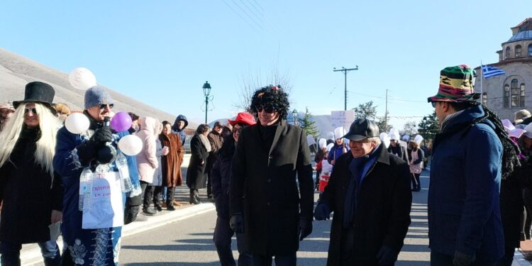 Την παρέλαση άνοιξε το δημοτικό συμβούλιο, με μεταμφιεσμένους το δήμαρχο, δημοτικούς αλλά και περιφερειακούς συμβούλους.