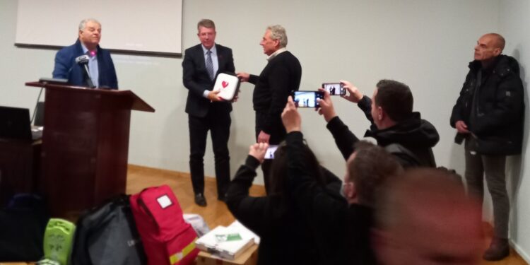 Με την ευχή «κάτι τόσο σημαντικό να μην επιτρέψουν οι συνθήκες να χρησιμοποιηθεί ποτέ», ο Πρόεδρος του Ομίλου Αντισφαίρισης Πτολεμαΐδας κ. Πέτρος Τσιάρας παρέλαβε σήμερα, στο πλαίσιο σχετικής τελετής που έγινε στην ΖΕΠ, έναν απινιδωτή που ανήκει πλέον στον Όμιλο.