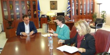 Κατά τη διάρκεια της εθιμοτυπικής συνάντησης η κα. DesRosiers εξέφρασε την χαρά της που βρίσκεται στην περιοχή, και έχει την ευκαιρία να γνωρίσει τους ανθρώπους της και να μοιραστεί μαζί τους όλα όσα συνδέουν τον Καναδά με την Ελλάδα.