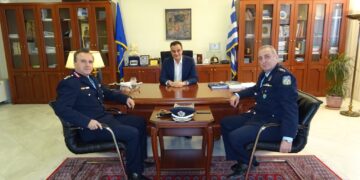 Κατά τη διάρκεια της εθιμοτυπικής συνάντησης ο Περιφερειάρχης συνεχάρη τον κ. Μαντζούκα και τον κ. Αμαραντίδη για την ανάληψη των νέων τους καθηκόντων, ευχήθηκε καλή δύναμη και καλή επιτυχία, υπογραμμίζοντας την άψογη συνεργασία που υπάρχει μεταξύ περιφέρειας και αστυνομίας και βεβαιώνοντας ότι η αγαστή αυτή συνεργασία θα συνεχιστεί.