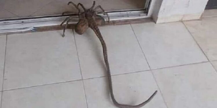 Η συγκεκριμένη αράχνη μπορεί να φτάσει τα 20 εκατοστά σε μήκος. Δεν είναι δηλητηριώδης, αλλά μεταφέρει βακτήρια, καθώς τρέφεται με νεκρά ζώα που βρίσκονται στο στάδιο αποσύνθεσης.