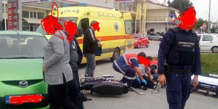 Tροχαίο ατύχημα σημειώθηκε στις 11:40 π.μ., στην έξοδο της πόλης (Κοζάνη), απέναντι από το super market ΑΒ Βασιλόπουλος, στο δρόμο προς Θεσσαλονίκη, όταν Ι.Χ. αυτοκίνητο συγκρούστηκε με μηχανάκι.