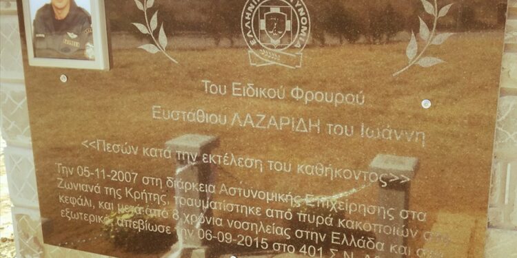 Πραγματοποιήθηκε το πρωί της Κυριακής 24/9, στο Τσοτύλι του δήμου Βοΐου, η τελετή για τα αποκαλυπτήρια του μνημείου για τον Ειδικό Φρουρό Ευστάθιο Λαζαρίδη ο οποίος είχε τραυματιστεί βαρύτατα στην επιχείρηση της αστυνομίας στα Ζωνιανά (Κρήτης) το 2007 κι άφησε την τελευταία του πνοή στο 401 Στρατιωτικό Νοσοκομείο, οκτώ χρόνια αργότερα.