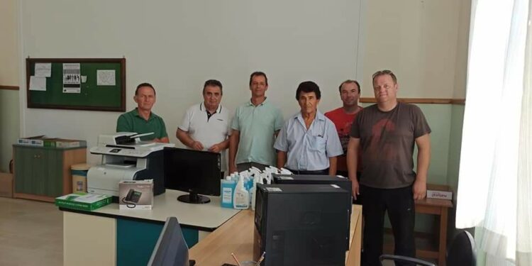 Ένα φωτοτυπικό πολυμηχάνημα– Δύο υπολογιστές–ενα τηλέφωνο–Δύο κιβώτια αντισηπτικά–1 κιβώτιο χαρτί φωτοτυπικού και μας υποσχέθηκε και ότι άλλο χρειαστούμε.