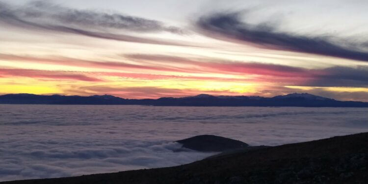 Ο Ήλιος έλαμπε, ενώ κάτω η ομίχλη καλύπτει όλη την πόλη . Και στη Δύση, μοναδικά χρώματα….
