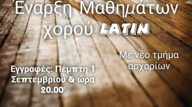 Σας ανακοινώνουμε την έναρξη μαθημάτων Latin χορού, με νέα τμήματα αρχαρίων!