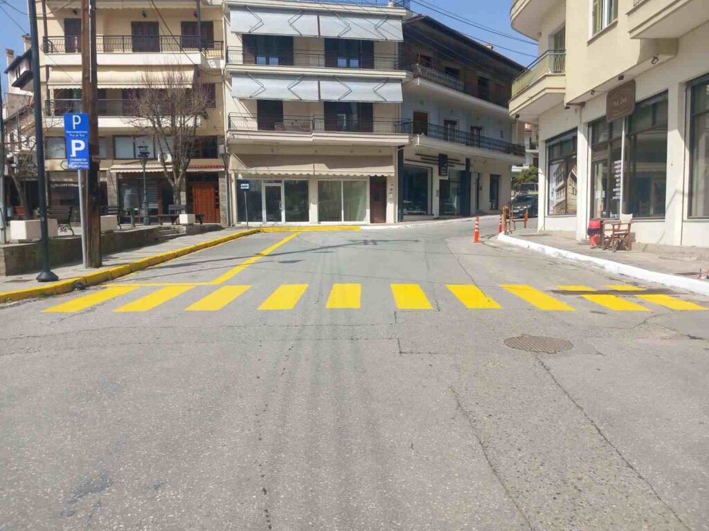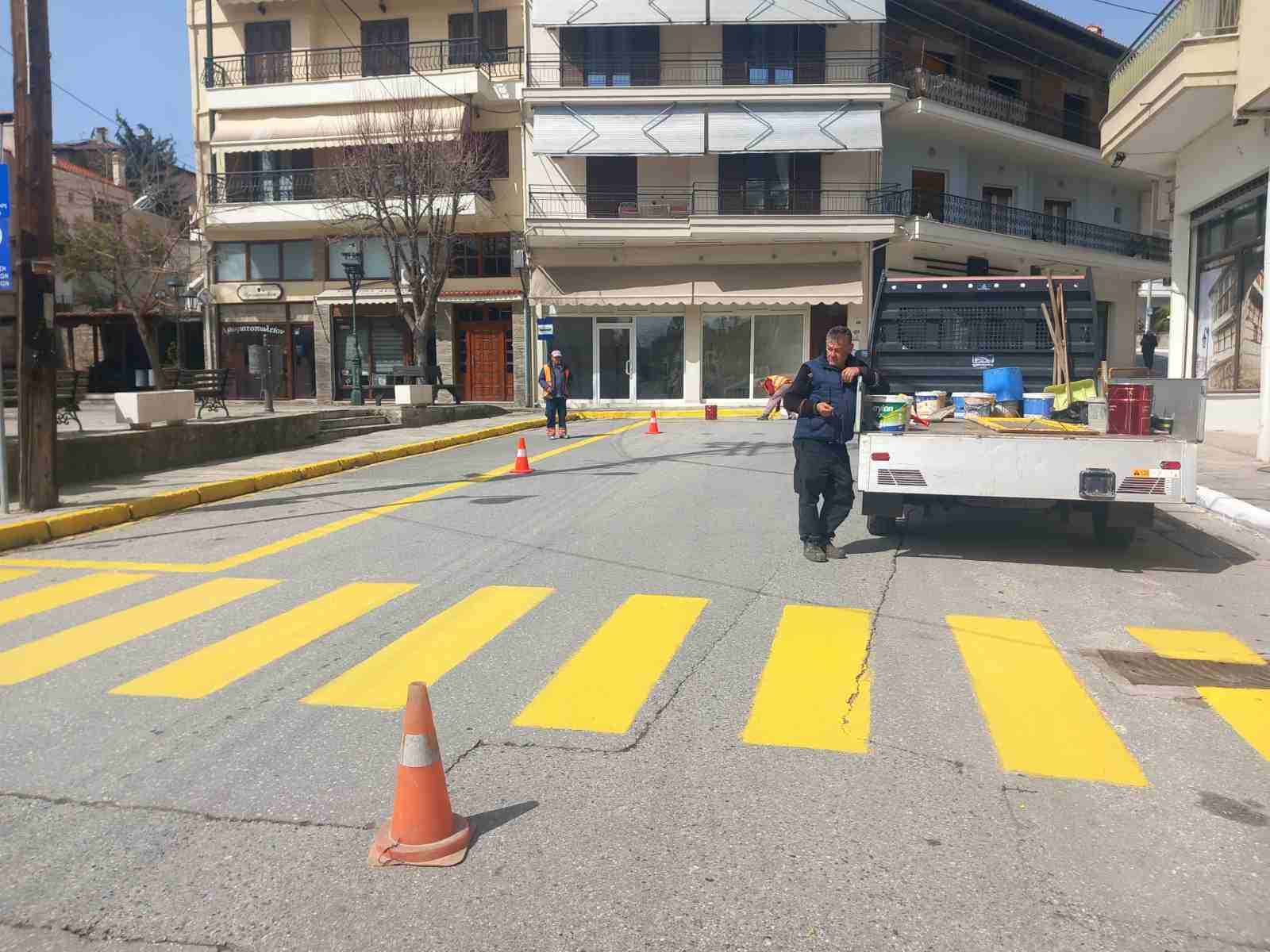 Ταυτόχρονα άρχισαν οι εργασίες διαγράμμισης στον κεντρικό δρόμο.