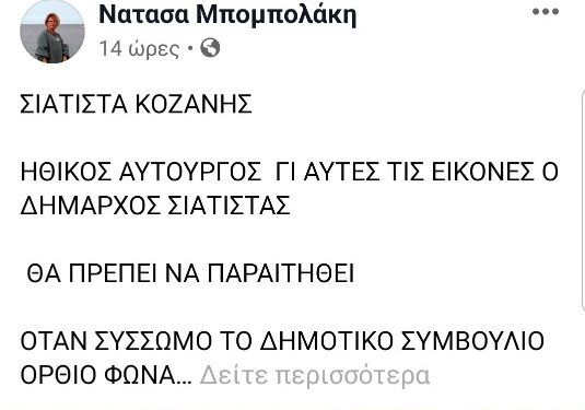 Μάλιστα στην ανάρτηση της εν λόγω κύριας, υπάρχουν κατάπτυστα σχόλια, για το δήμαρχο, την οικογένεια του και το Δήμο.