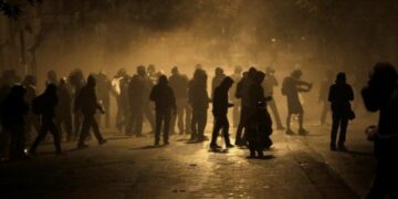 Σύμφωνα με την Αστυνομία, εκτός από τη δικηγόρο που τραυματίστηκε από φωτοβολίδα στο πόδι, κατά τη διάρκεια των επεισοδίων τραυματίστηκαν έξι αστυνομικοί.