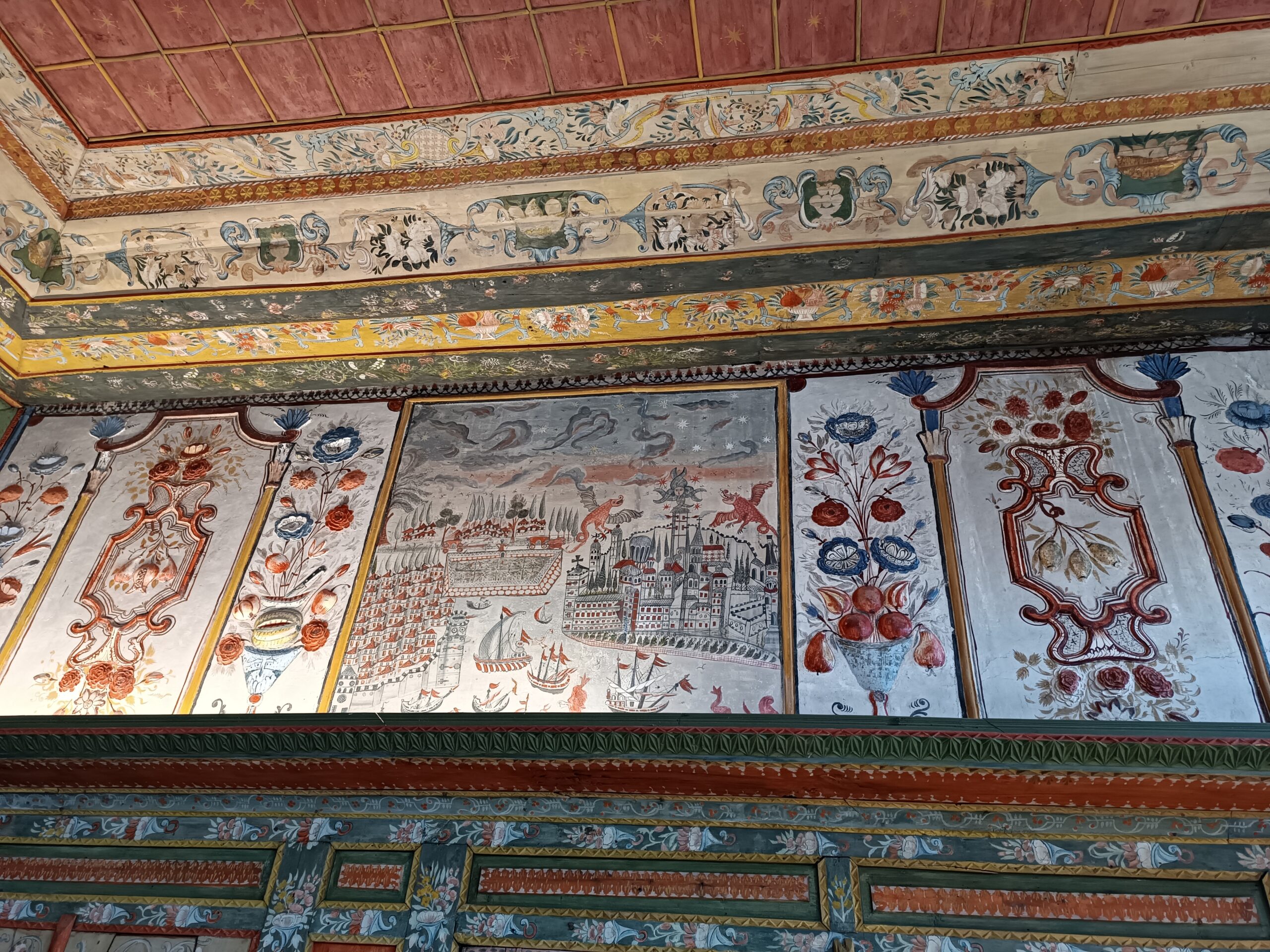 Μεταξύ άλλων, το αρχοντικό της Πούλκως είναι γνωστό για την σπάνια τοιχογραφία της Κωνσταντινούπολης – βασισμένη σε αντίστοιχη χαλκογραφία από την Μονή Βατοπαιδίου – με τα παστέλ χρώματα, τις λεπτές μαύρες γραμμές και τους ιπτάμενους δράκους, ενώ βυζαντινοί αετοί, φυτά και ζωγραφιστές γιρλάντες κοσμούν πολλές από τις εξαιρετικά σωζόμενες τοιχογραφίες που υπάρχουν σε διάφορα σημεία του αρχοντικού. Ούτε λόγος, φυσικά, για τα ζωγραφιστά τετραγωνισμένα ταβάνια και τις κάθε λογής επιφάνειες που είναι καλυμένες με περίτεχνα φυτικά μοτίβα σε αποχρώσεις πράσινου, κόκκινου και κίτρινου.