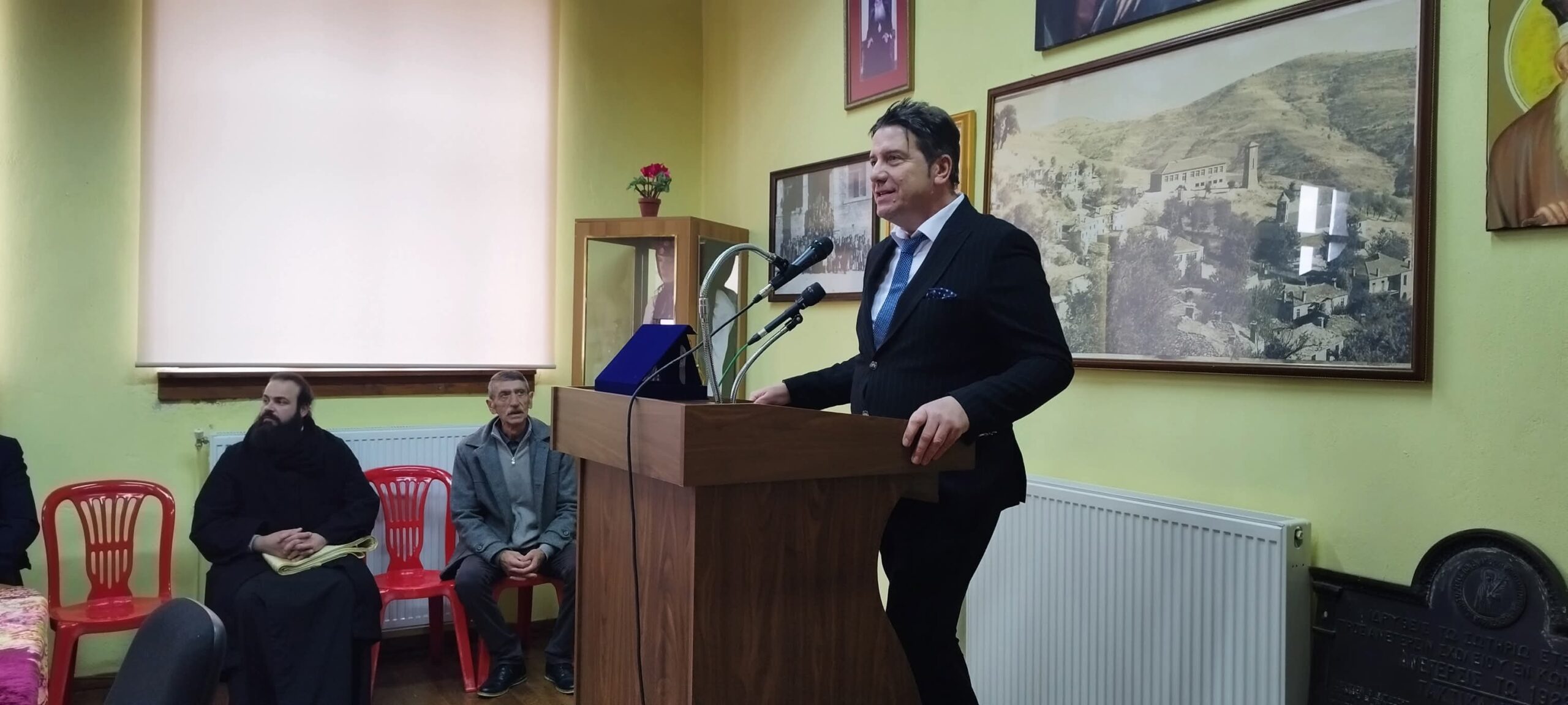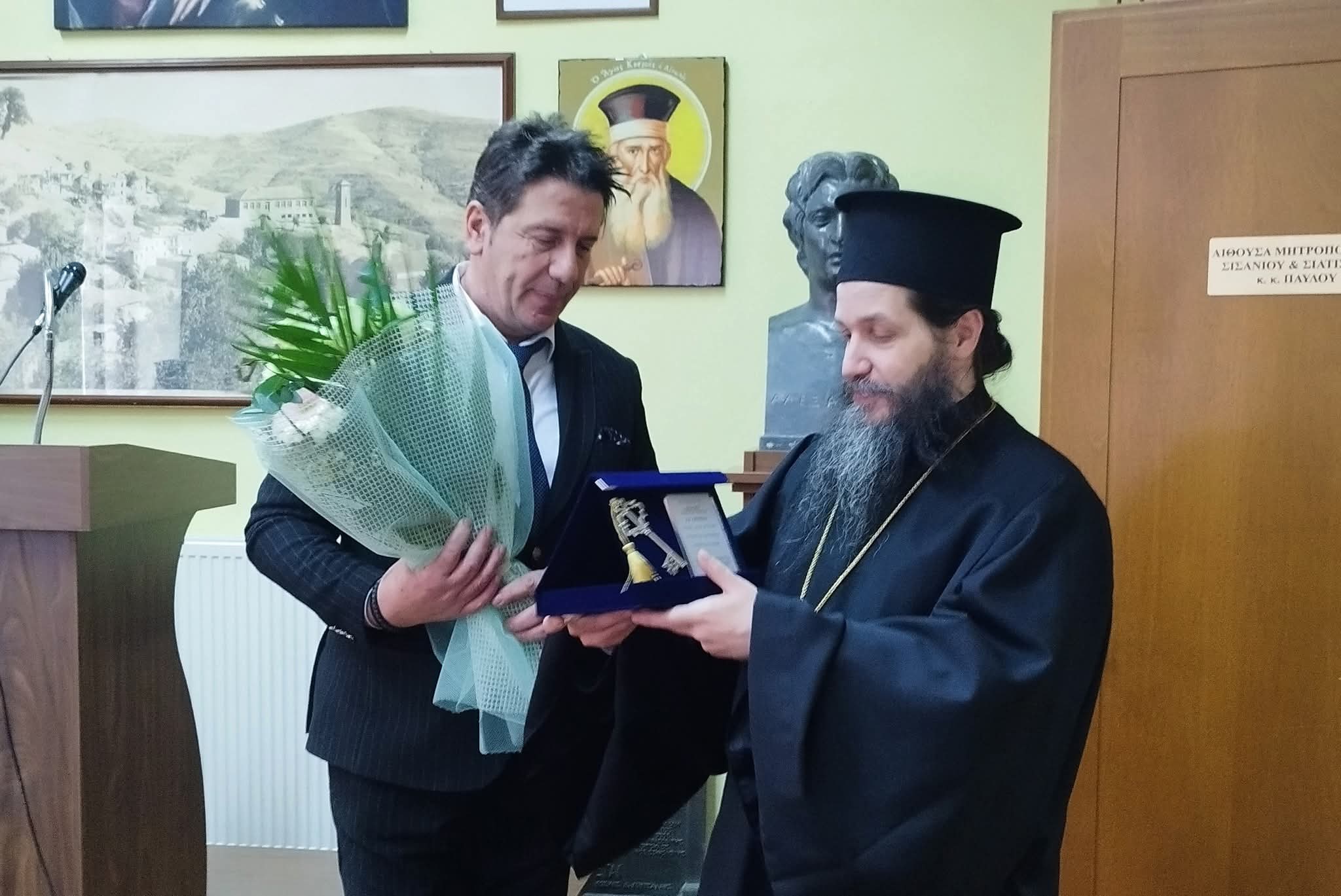 Ακολούθησε δεξίωση και ομιλίες στην αίθουσα δεξιώσεων του Δημοτικού Σχολείου Αυγερινού, όπου ο Πρόεδρος της Κοινότητας, Χρήστος Γκίνης παρέδωσε το κλειδί της Κοινότητας στον Μητροπολίτη Σισανίου και Σιατίστης κ. Αθανάσιο.
