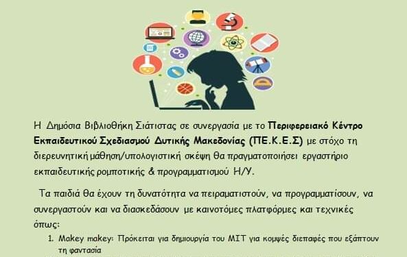 Εκπαιδευτική δράση για τη ρομποτική θα πραγματοποιηθεί στη βιβλιοθήκη Σιάτιστας την Πέμπτη 30 Ιανουαρίου από τις 5 μέχρι τις 7 το απόγευμα