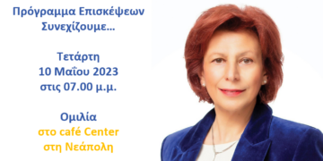 Βρυζίδου: Την Τετάρτη 10 Μαΐου 2023 στις 07.00 μ.μ. Ομιλία στο café Center στη Νεάπολη