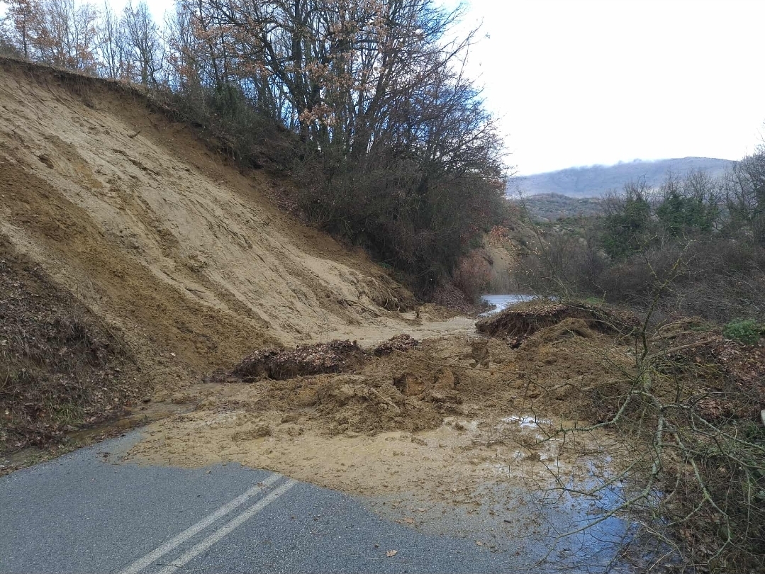 Οι έντονες βροχοπτώσεις προκάλεσαν κατολίσθηση στο δρόμο προς Πλατανιά.