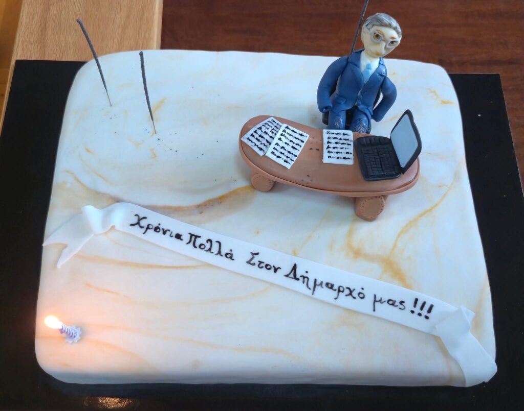 Οι υπάλληλοι του Δήμου του επιφυλαξαν μια τούρτα έκπληξη.