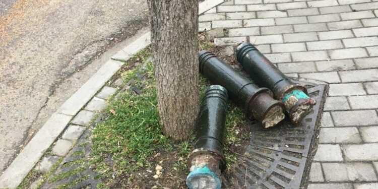 Παράξενο τροχαίο στα Γρεβενά. Αυτοκίνητο πήρε… παραμάζωμα όλα τα κολονάκια που βρήκε μπροστά του, στο κέντρο της πόλης.
