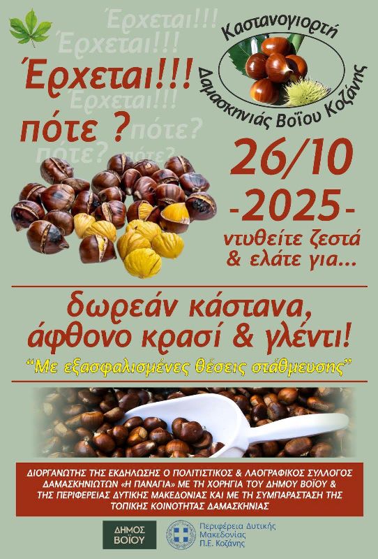 Δήμος Βοΐου: Καστανογιορτή στη Δαμασκηνιά