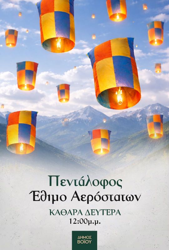 Την Καθαρά Δευτέρα 23 Φεβρουαρίου και ώρα 12:00 το μεσημέρι, στην πλατεία Πενταλόφου, μικροί και μεγάλοι θα απολαύσουμε το πέταγμα των αερόστατων, γεμίζοντας τον ουρανό με χρώματα!