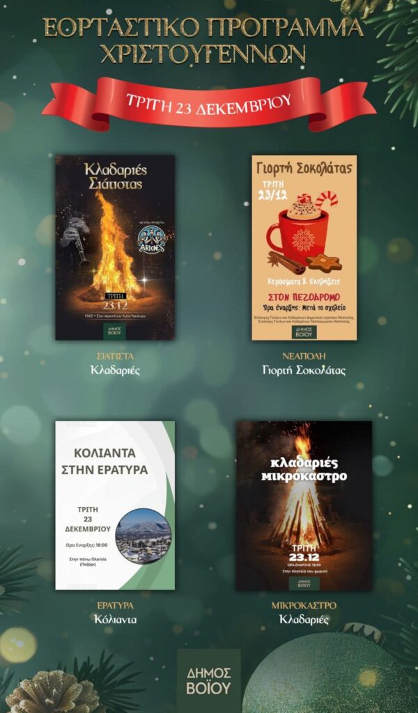 Δήμος Βοΐου: Το Εορταστικό πρόγραμμα για τις 23 Δεκεμβρίου