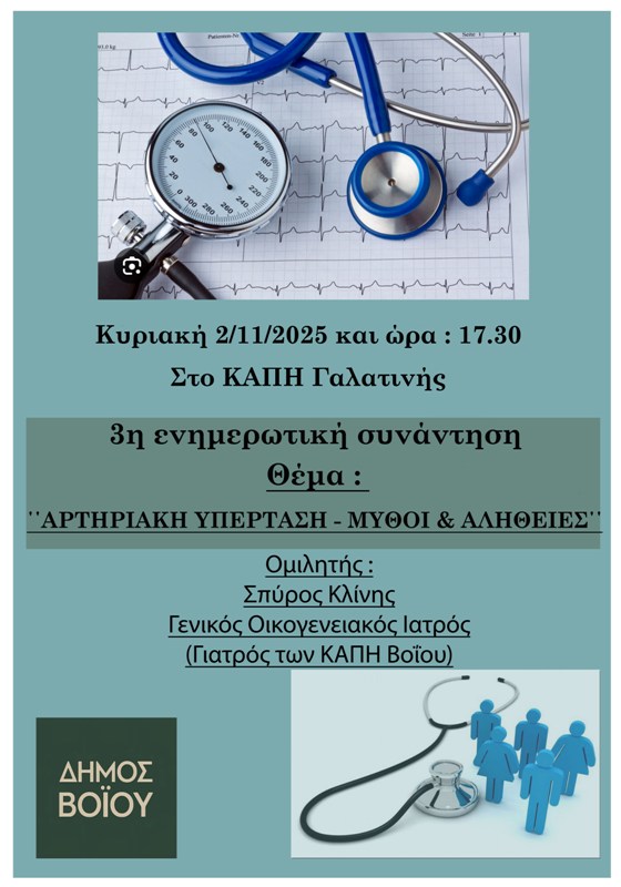 3η ενημερωτική συνάντηση με θέμα «Αρτηριακή υπέρταση- Μύθοι και αλήθειες».
