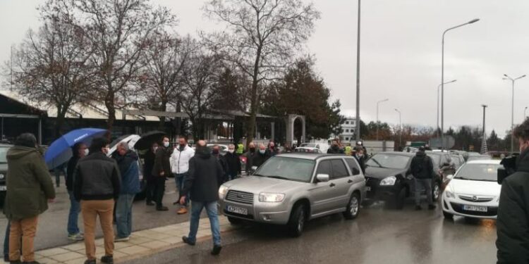 Τα δεκάδες οχήματα, υπό συνεχή βροχή, συγκεντρώθηκαν στον κόμβο του “Camelot” και στη συνέχεια, με πομπή, κατευθύνθηκαν προς τη ΖΕΠ και το κτίριο της Περιφέρειας Δυτικής Μακεδονίας