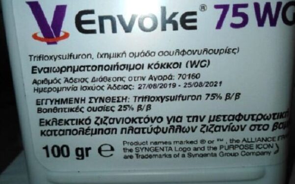 Συγκεκριμένα, προσκομίστηκε φωτογραφία σκευάσματος με το ηλεκτρονικό ταχυδρομείο που φέρει την εμπορική ονομασία “ENVOKE 75WG” με πλαστή Ελληνική ετικέτα. Το προϊόν δεν έχει λάβει κατά παρέκκλιση άδεια διάθεσης στην αγορά, παρόλα αυτά στην ετικέτα του εικονιζόμενου σκευάσματος αναφέρεται ότι έχει δήθεν «Ημερομηνία Ισχύος Άδειας: 27/08/2019-25/08/2021», το οποίο δεν ανταποκρίνεται στην πραγματικότητα. Το εικονιζόμενο σκεύασμα είναι μη εγκεκριμένο, αγνώστου σύστασης.