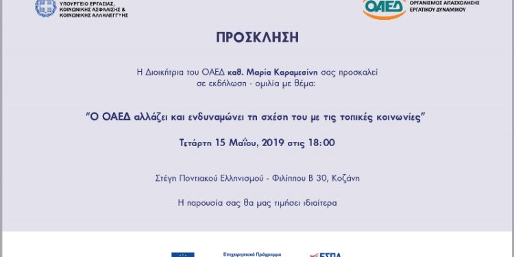 Η Διοικήτρια του ΟΑΕΔ καθ. Μαρία Καραμεσίνη σας προσκαλεί σε εκδήλωση – ομιλία με θέμα: “Ο ΟΑΕΔ αλλάζει και ενδυναμώνει τη σχέση του με τις τοπικές κοινωνίες”.