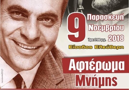 Την Παρασκευή 9 Νοεμβρίου και ώρα 19:00΄στο Πολιτιστικό Κέντρο Σερβίων θα πραγματοποιηθεί ένα αφιέρωμα μνήμης στον Στέλιο Καζαντζίδη.