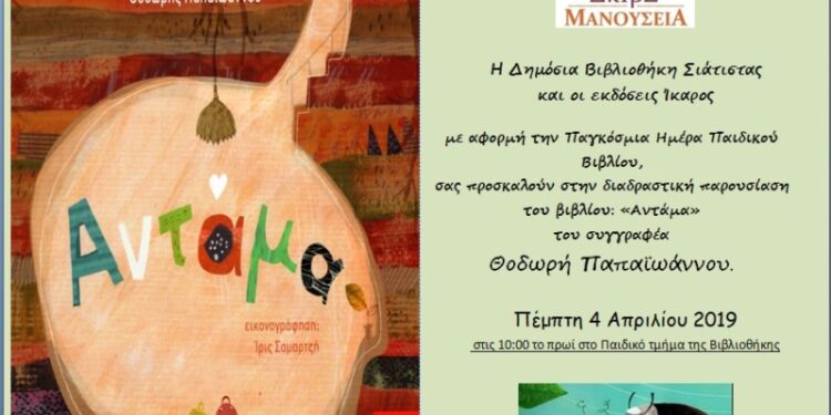 Η Δημόσια Βιβλιοθήκη Σιάτιστας και οι εκδόσεις Ίκαρος με αφορμή την Παγκόσμια Ημέρα Παιδικού Βιβλίου σας προσκαλούν στην διαδραστική παρουσίαση του βιβλίου Αντάμα του συγγραφέα Θοδωρή Παπαϊωάννου.