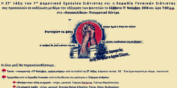 Εκδήλωση για την 17 Νοέμβρη από το 1ο δημοτικό σχολείο Σιάτιστας και τη χορωδία γυναικών