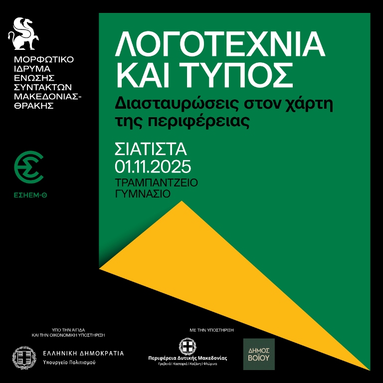 Το Μορφωτικό Ίδρυμα της ΕΣΗΕΜ-Θ εγκαινιάζει το Σάββατο 1 Νοεμβρίου από τη Σιάτιστα τον κύκλο Ημερίδων-Εργαστηρίων του έργου «Λογοτεχνία και Τύπος: Διασταυρώσεις στον Χάρτη της Περιφέρειας», που εντάσσεται στο πρόγραμμα του Υπουργείου Πολιτισμού «Δημιουργική Ελλάδα».