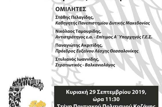 Σας προσκαλούμε να μας τιμήσετε με την παρουσία σας στην εκδήλωση που θα πραγματοποιηθεί την Κυριακή 29 Σεπτεμβρίου 2019 και ώρα 11.30 στη Στέγη Ποντιακού Πολιτισμού Κοζάνης.