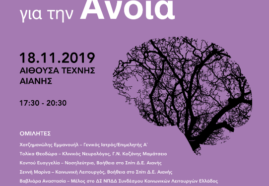 Σας προσκαλούμε στην Ενημερωτική Ημερίδα για την Άνοια, που θα πραγματοποιηθεί τη Δευτέρα 18