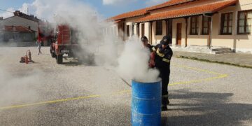 Όλα αυτά συνέβησαν στο πλαίσιο της άσκησης αντιμετώπισης σεισμού και εκδήλωσης φωτιάς στη σχολική μονάδα.