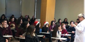 Η πρόεδρος του Συλλόγου Φίλων του Νοσοκομείου «Αντηρίδα» καλωσόρισε τους μαθητές μιλώντας τους για την αξία του εθελοντισμού και το έργο του συλλόγου.