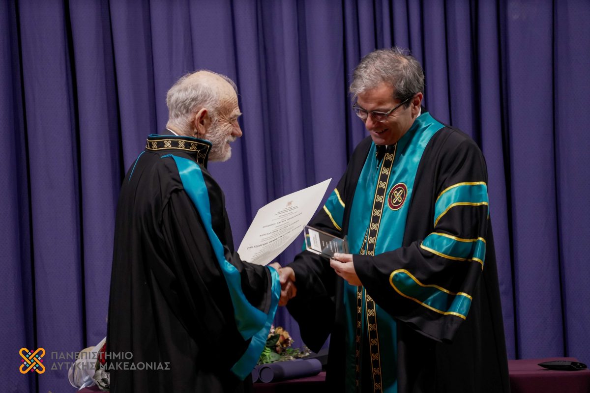 Στον χαιρετισμό του, ο Πρύτανης του Πανεπιστημίου Δυτικής Μακεδονίας, Καθηγητής Θεόδωρος Θεοδουλίδης, έκανε λόγο για μια στιγμή “χαράς και συγκίνησης”, καλωσορίζοντας τον Γιώργο Λιάνη στην ακαδημαϊκή κοινότητα. Αναφέρθηκε στη σημασία της τιμητικής αναγόρευσης, σημειώνοντας ότι το Πανεπιστήμιο τιμά ανθρώπους που έχουν αφήσει το δικό τους αποτύπωμα.