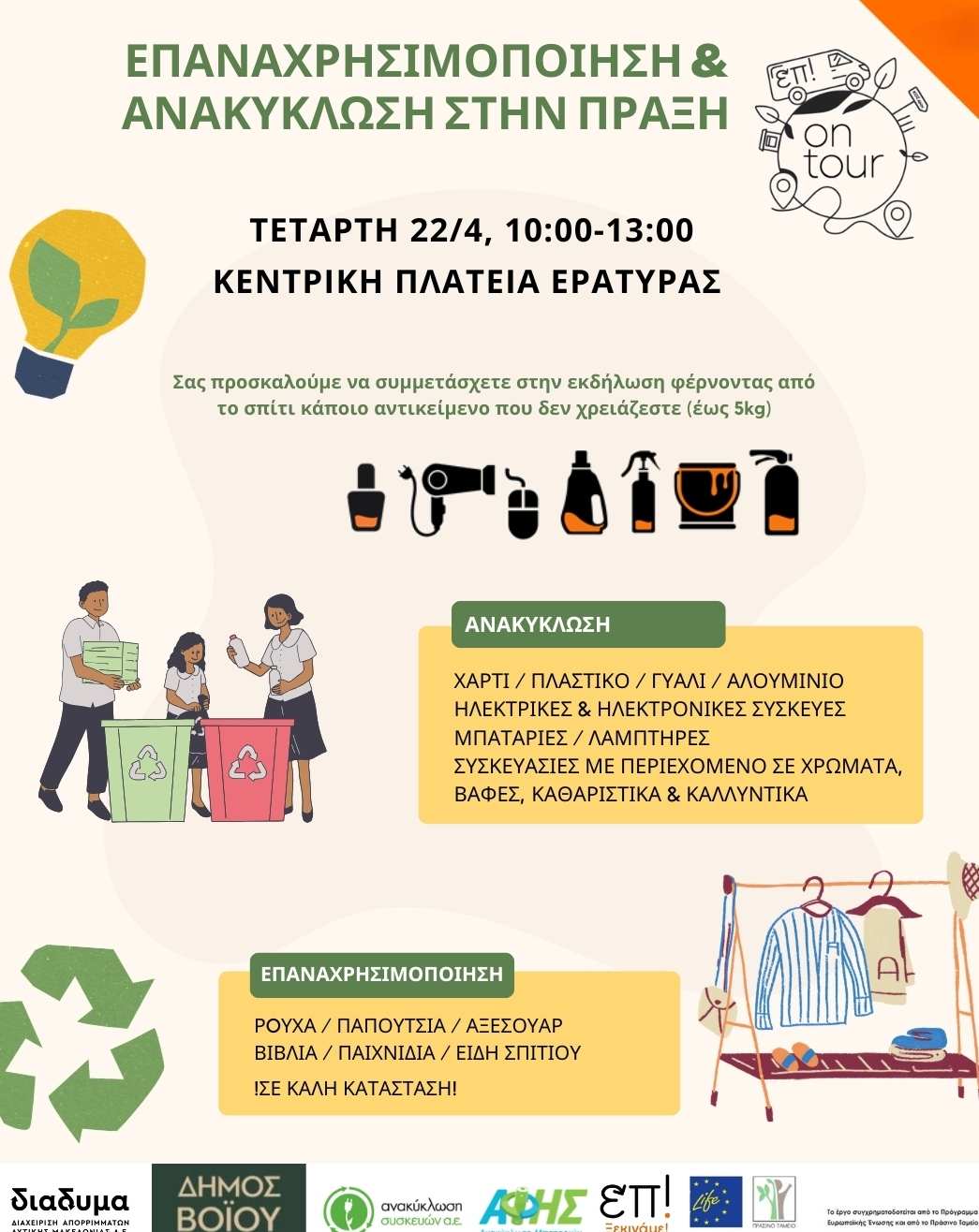 Η δράση υλοποιείται στο πλαίσιο του έργου LIFE-IP CEI-Greece – (LIFE18 IPE/GR/000013) για την εφαρμογή της Κυκλικής Οικονομίας στην Ελλάδα σε συνεργασία της ΔΙΑΔΥΜΑ ΑΕ με την Ανακύκλωση Συσκευών Α.Ε. και την ΑΦΗΣ Α.Ε.