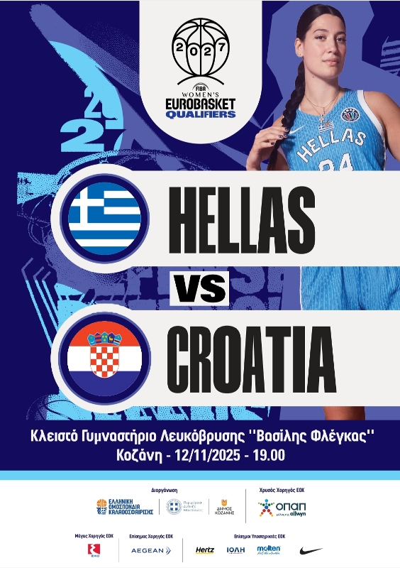 Η πορεία της Εθνικής Γυναικών προς το Ευρωμπάσκετ 2027 αρχίζει την Τετάρτη 12 Νοεμβρίου 2025 στην Κοζάνη, από την αναμέτρηση με την Κροατία, στην πρεμιέρα της προκριματικής φάσης της διοργάνωσης στις 19:00 στο Κλειστό Γυμναστήριο Λευκόβρυσης “Β. Φλέγκας”.