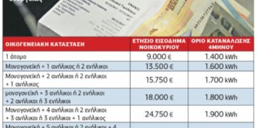 | Νοικοκυριό αποτελούμενο από δύο ενήλικα μέλη και ένα ανήλικο μέλος ή μονογονεϊκή οικογένεια με δύο ανήλικα μέλη | 15.750 ευρώ |
