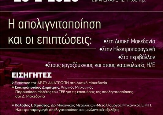 “Παρουσίαση μελέτης του ΤΕΕ για τις επιπτώσεις της απολιγνιτοποίησης στη Δυτ. Μακεδονία”