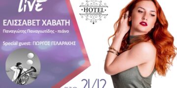 Η Ελισσάβετ Χαβάτη έρχεται στο Hotel all day coffee bar στις 21/12 με γεμάτες τις αποσκευές της από γνωστά και αγαπημένα ακούσματα. Ένα μουσικό ταξίδι με σταθμούς γνώριμους μεγάλων Ελλήνων συνθετών εξωστρεφές και ρυθμικό με αναφορές στο παρελθόν καθώς και σύγχρονες νότες ισορροπώντας άψογα στις δυο πτυχές της προσωπικότητας της, την ευαισθησία και το πάθος. Swing , bossa nova , διασκευές ρετρό τραγουδιών!