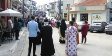 Οι πιστοί σήμερα μετά το τέλος της Θείας λειτουργίας ξεπροβόδισαν την Ιερή Εικόνα , και την συνόδευαν στο Μοναστήρι.