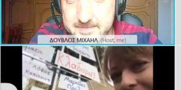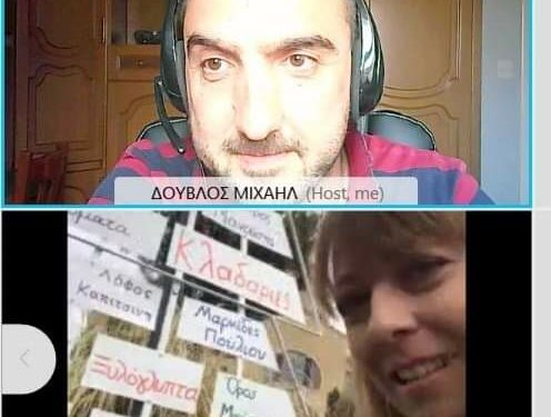 Ζωντανά από τη Σιάτιστα, από το σημείο όπου είναι στημένο το δέντρο της Αλφαβήτας της Σιάτιστας, έδωσε συγχαρητήρια στα παιδιά για την προσπάθειά τους, καθώς και στην προσπάθεια των γονέων.