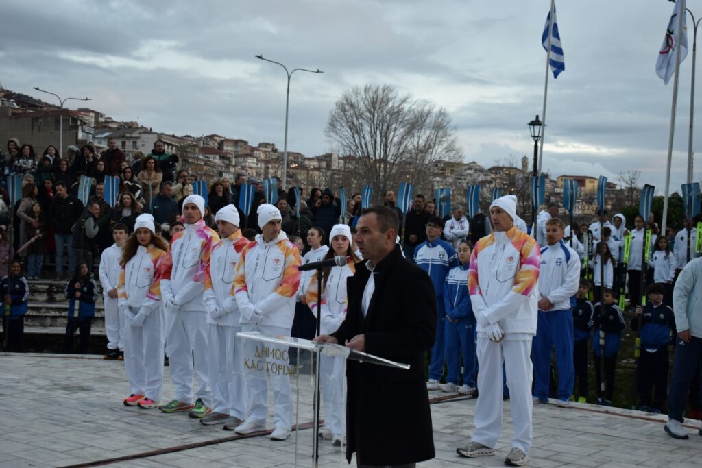 Στην εκδήλωση χαιρετισμό απηυθύναν ο Δήμαρχος Καστοριάς Γιάννης Κορεντσίδης, ο Πρόεδρος της Επιτροπής Ολυμπιακής Λαμπαδηδρομίας και μέλος της Ελληνικής Ολυμπιακής Επιτροπής Θωμάς Τόκας και ο Εκπρόσωπος της Οργανωτικής Επιτροπής Milano Cortina 2026, Alessio Boggiatto.